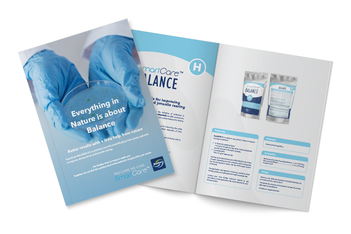 Better results with a little help from nature. BioMar brings extensive knowledge in the utilisation of probiotics in aquaculture feeds and with SmartCare BALANCE, we offer a solution to enhance optimal environmental conditions and a natural balance for shrimp to thrive in.