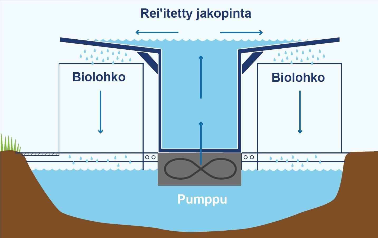 Vesisuihkut kulkevat hapella rikastetun kammion kautta ennen kuin ne osuvat veden pintaan noin 20 cm levyn alapuolella. Suihkut puhaltavat happikuplia veteen, jolloin syntyy ”kuplasumu”, joka varmistaa hapen tehokkaan sekoittumisen veteen.