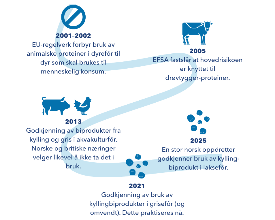 Kyllingmel har vært lovlig å bruke i fiskefôr siden 2013. I Norge tar fôrprodusentene det først i bruk i 2025, når en stor oppdretter sier ja til bruken.