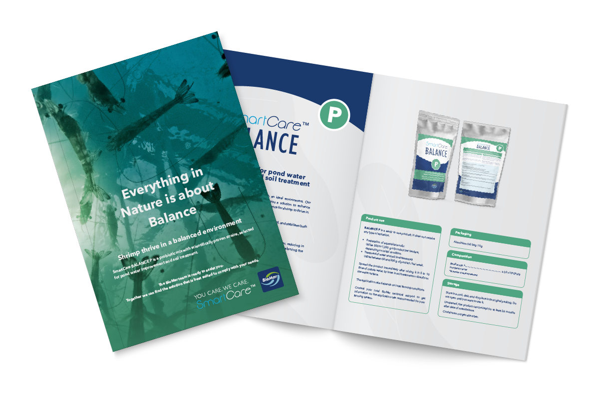 The health and wellbeing of shrimp start with an ideal environment. Our SmartCare BALANCE range of products offer you a solution to enhance optimal environmental conditions and a natural balance for shrimp to thrive in.