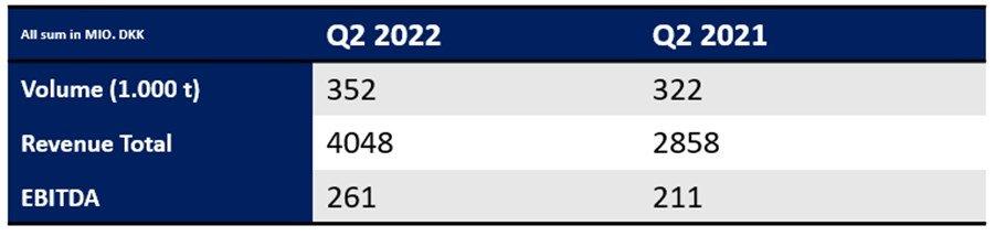 Driven by a strong sale in Q2, BioMar earnings went up by 24% compared to Q2 2021. The significant increase in revenue in Q2 was driven by higher sales volumes, raw material prices, and to some extend currency rate development.