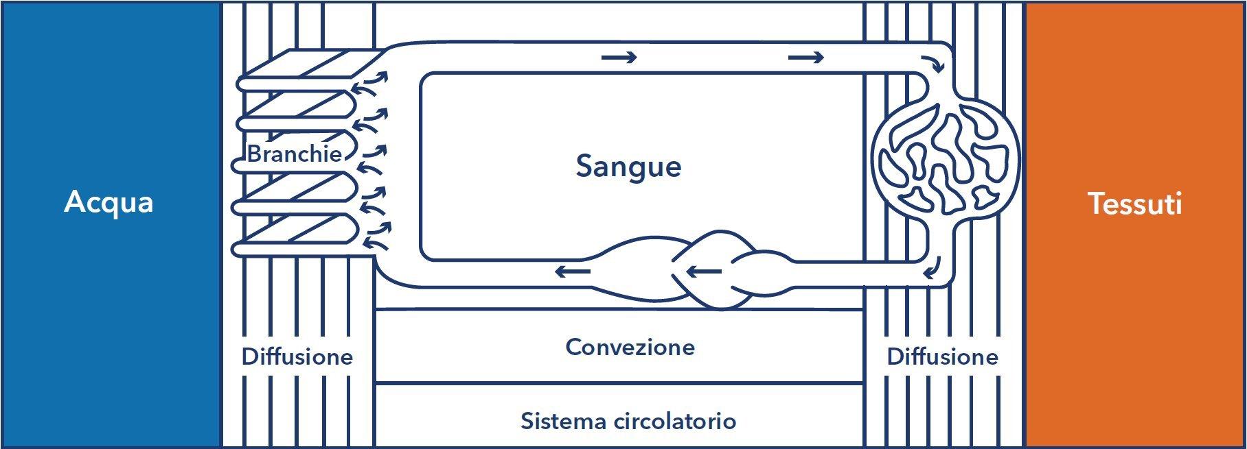 I pesci hanno bisogno che l’ossigeno venga consegnato alle cellule di tutto il loro corpo per mantenere le normali funzioni. I pesci usano le branchie per ottenere ossigeno dall'acqua. L'emoglobina, la proteina di trasporto dell'ossigeno nei globuli rossi, assorbe l'ossigeno dall'acqua attraverso le branchie e lo indirizza nel sangue. Da qui, l'ossigeno viene diffuso alle cellule negli organi / tessuti.