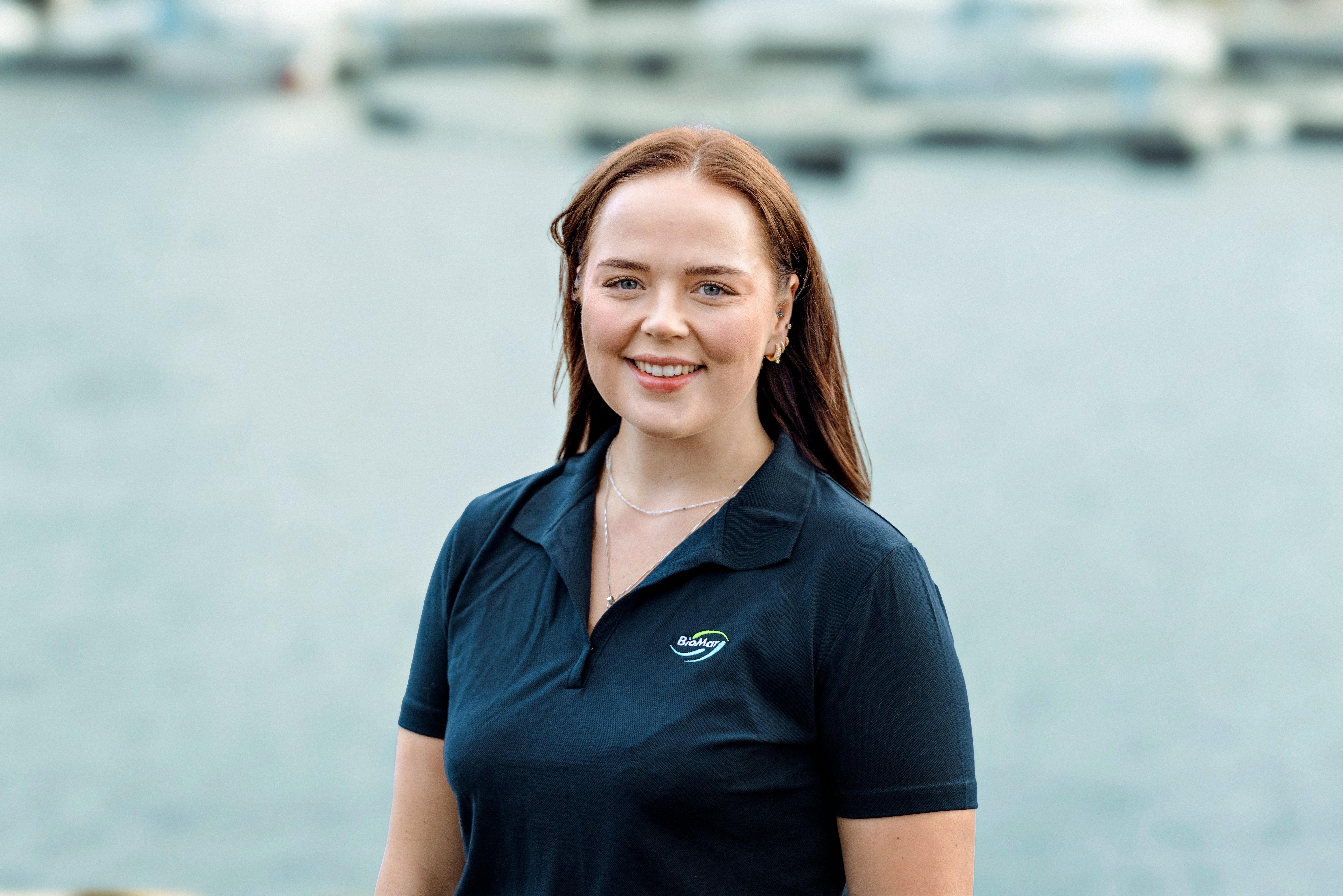 Sara Schjem Sørgård, 26 år gammel, kommer fra Narvik, og har i de siste årene etablert seg i Trondheim. Med utdanning fra Bodø, en bachelor i Havbruksdrift og ledelse og en master i Biovitenskap med spesialisering innenfor akvakultur, har hun hatt en variert reise gjennom havbruksnæringen. I dag jobber hun i markedsavdelingen i BioMar, der hun kombinerer teknisk bransjeinnsikt med kreativ kommunikasjon.